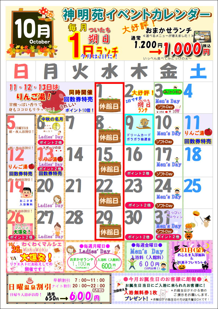 10月のイベントカレンダー